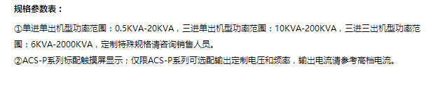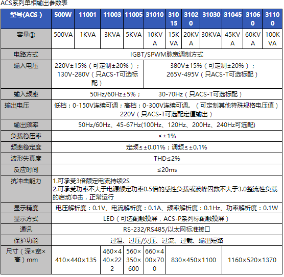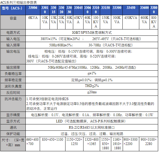 • 可定制寬電壓范圍、寬頻率范圍輸入,輸出可做定值(220V380V可定制特殊電壓值)輸出(ACS-T系列)。
